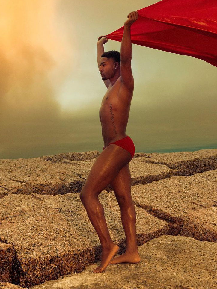 Model and Prince Swimwear designer Stephen snapped on the beach by Houston-based photographer Cameron Perry.